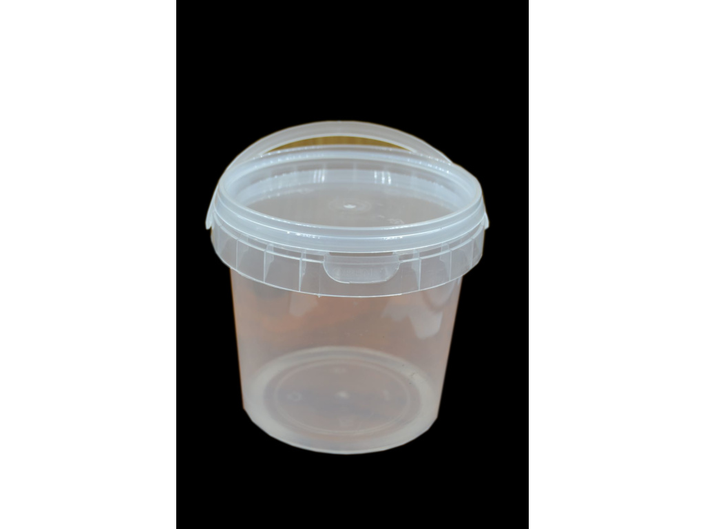 Plastový kyblík s víčkem transparentní. Příklad použití. Škvařené sádlo, polévka. Uložení potravin.