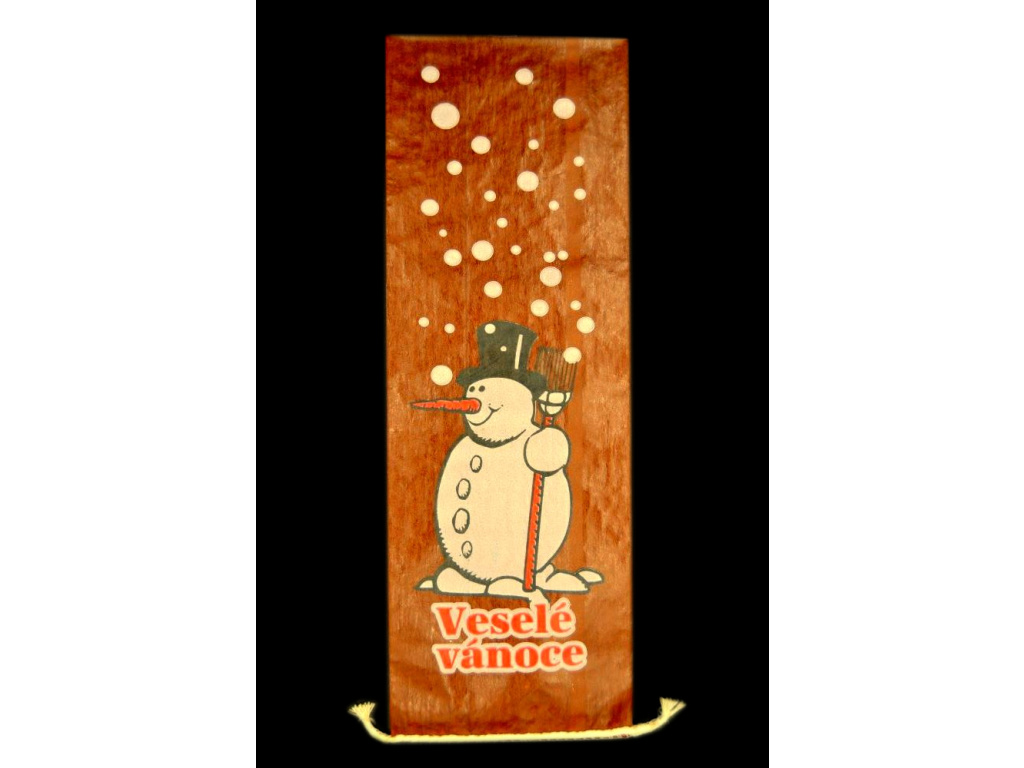 Uditelný salámový obal s potiskem sněhuláka ve sněhu. Určeno pro salámy typu trvanlivé.